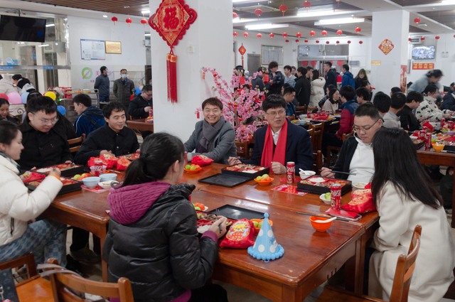 在廣西大學(xué)萃苑餐廳,羅廷榮代表學(xué)校向留校過年的同學(xué)們送上新春的問候與祝福,為同學(xué)們分發(fā)“春節(jié)紅包”和“福袋”,為近兩天過生日的2名同學(xué)慶生,與大家同唱生日歌、同切生日蛋糕,并與同學(xué)們一起吃年夜飯,拉家常、話發(fā)展。