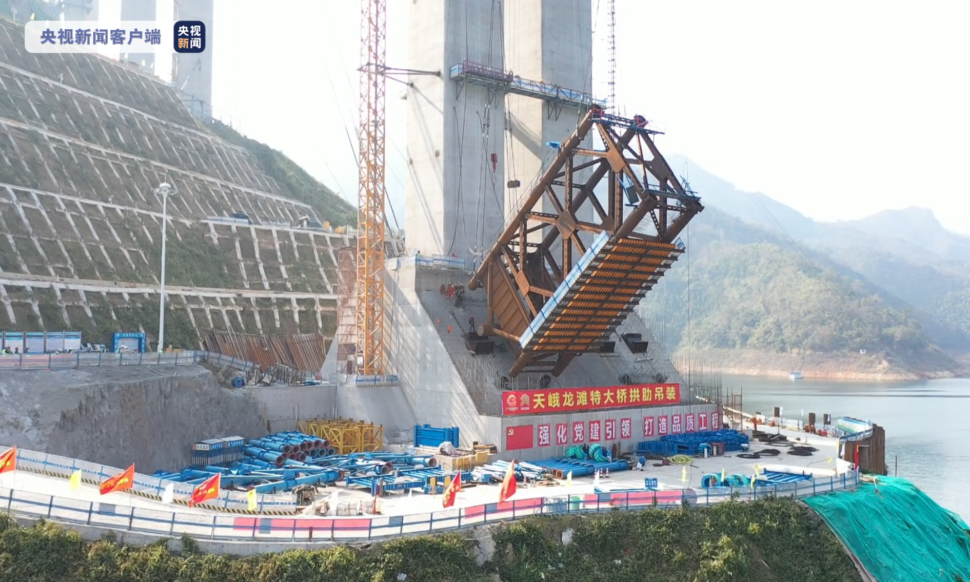 據了解,天峨龍灘特大橋是南天高速的控制性工程,主橋跨徑600米,是目前在建的世界最大跨徑拱橋,大橋的施工建造涵蓋了拱橋、斜拉橋、懸索橋、簡支梁橋、連續鋼構橋等橋型的原理及工藝,是國家交通運輸行業重點科技項目,也是拱橋技術發展的前沿工程,施工難度位居世界同類橋梁前列。