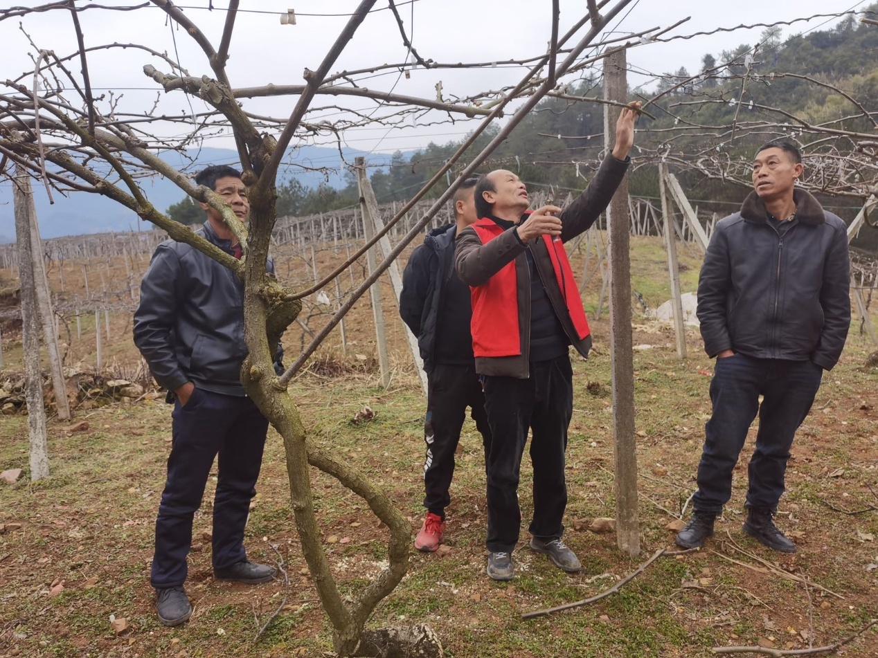 廣西植物研究所科技特派員團隊在桂林市興安縣獼猴桃種植基地,指導防寒抗凍技術(shù)及獼猴桃潰瘍病防控技術(shù)。(央廣網(wǎng)發(fā) 廣西科技廳供圖)