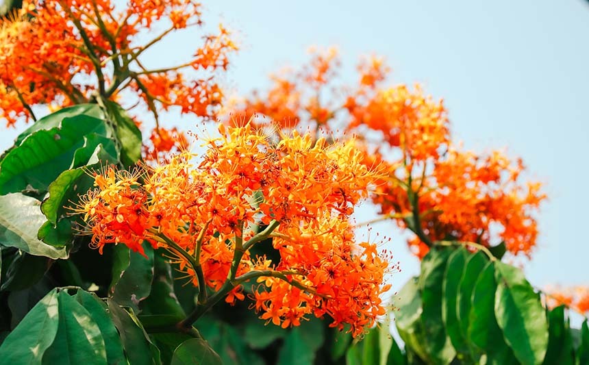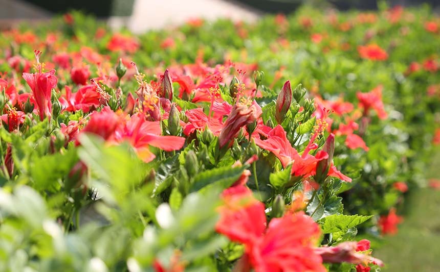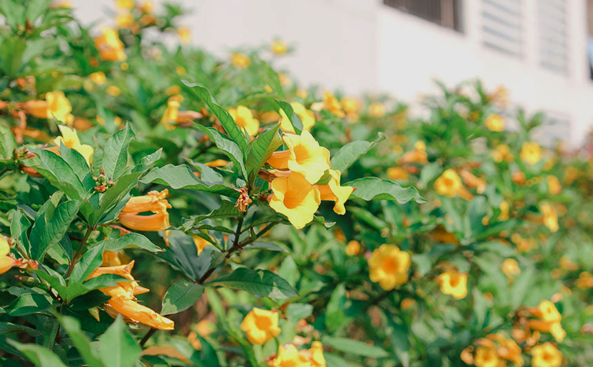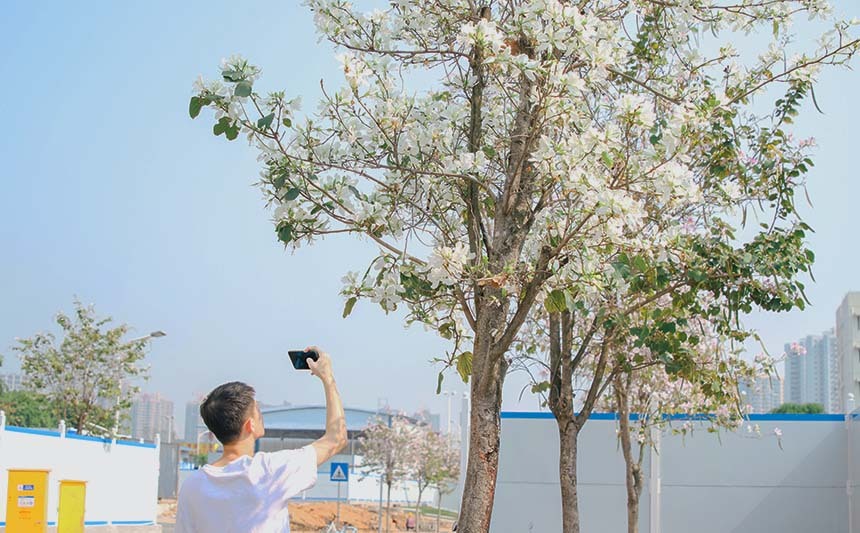近日,廣西大學(xué)迎來花期。洋紫荊、三角梅、朱瑾等花朵相繼綻放,點(diǎn)綴了校園的春天,共同構(gòu)成了一道秀麗的風(fēng)景線,不時(shí)引來行人駐足觀賞,拍照留念。圖為藍(lán)天下的白洋紫荊。