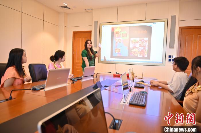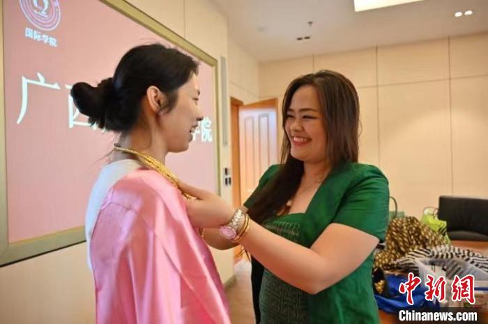課堂上,一首節奏輕快的泰國經典民謠響起,在泰露露的帶領下,幾名身穿華麗泰式服裝的中國學生跳起泰國傳統舞蹈,通過沉浸體驗,學習泰國文化。