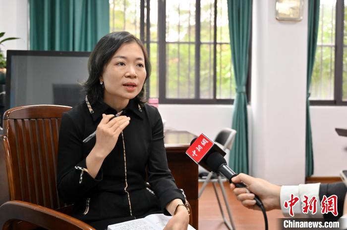 圖為廣西大學外國語學院東南亞語系副主任盧錦纓接受中新網采訪。 俞靖 攝