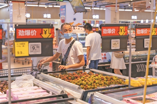 6月21日,市民在南寧市一家大型商業超市選購特價水果。 本報記者 何學俏 實習生 范宗銘/攝
