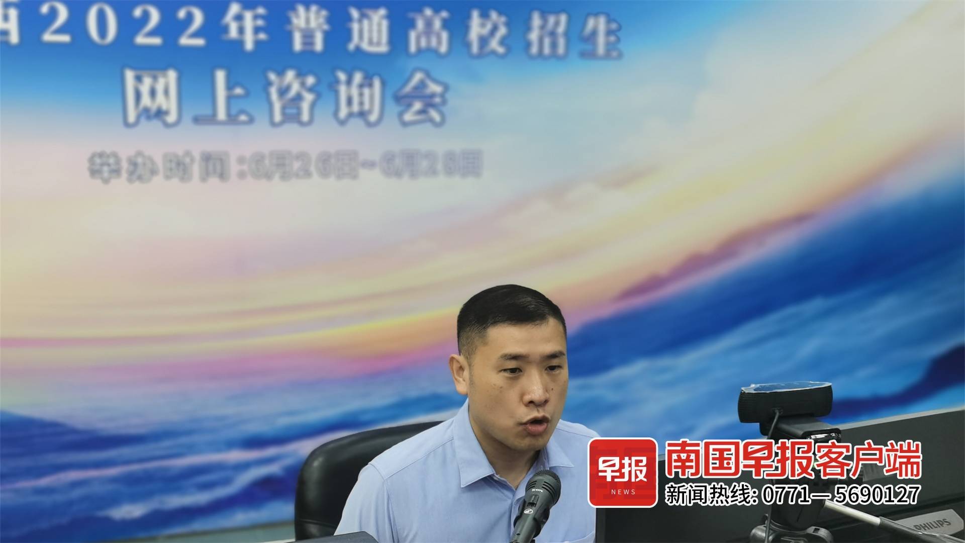 ▲自治區招生考試院普招處處長馬翀正在直播。南國早報客戶端記者 蔣曉梅攝