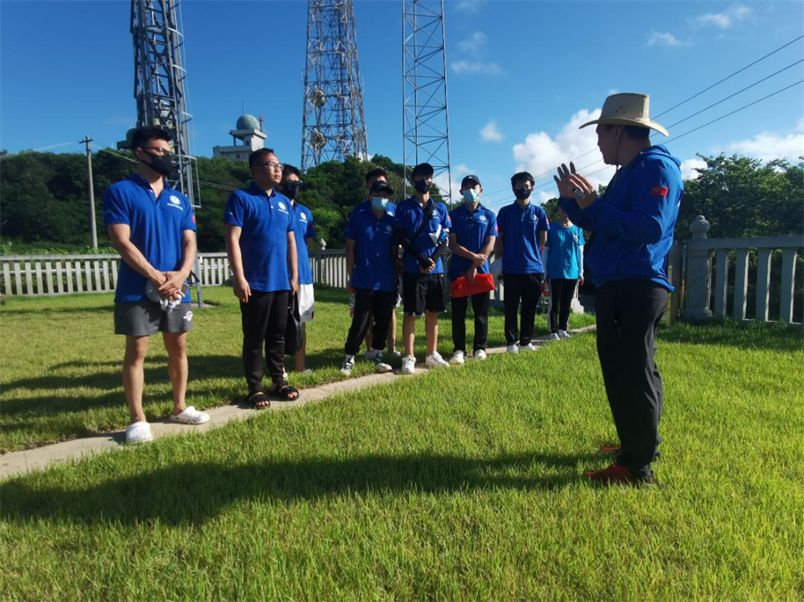 實(shí)踐團(tuán)成員還前往國(guó)家海洋局潿洲海洋環(huán)境監(jiān)測(cè)站的四個(gè)位點(diǎn)進(jìn)行參觀。通過(guò)聆聽(tīng)講解,成員們對(duì)相關(guān)海洋氣象監(jiān)測(cè)儀器和雷達(dá)站的精準(zhǔn)測(cè)量設(shè)備有了更深入的了解,并在站長(zhǎng)莫少華的指導(dǎo)下學(xué)習(xí)使用相關(guān)儀器來(lái)觀測(cè)海面位點(diǎn)的海況。