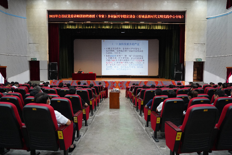 7月26日上午,自治區黨委講師團特聘教授(專家)鄉村振興專題宣講會在忻城縣影劇院舉行。