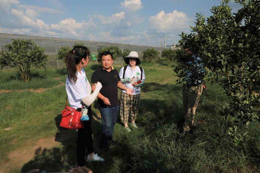 融安縣農(nóng)業(yè)農(nóng)村局副局長韋健謀帶領(lǐng)實踐隊員參觀金桔苗圃及金桔古樹。 李永強攝
