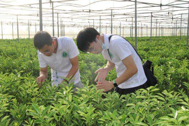 博士團實踐隊成員在查看金桔苗圃。陸宇詩攝