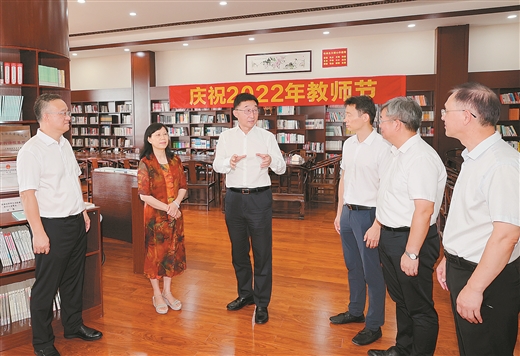9月9日,自治區黨委書記、自治區人大常委會主任劉寧來到廣西大學和南寧市第二中學,看望慰問教師代表,代表自治區黨委、政府向全區廣大教師致以節日祝賀和誠摯問候,祝大家教師節快樂。 本報記者 黃 克/攝
