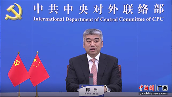 中共中央對外聯絡部副部長陳洲致辭。主辦方供圖