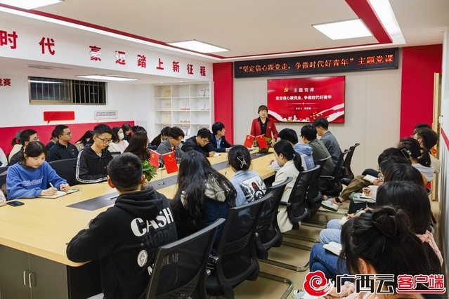 近日,廣西大學“銳見”輔導員工作室3名輔導員走進學生社區,先后以“深入學習‘中國式現代化’,做新時代中國好青年”“增強文化滋養,堅定文化自信”“聽二十大報告科學回答‘四個之問’,做求真務實奮斗有為好青年”為題,開展黨的二十大精神巡講活動,來自不同宿舍園區的100余名學生參加活動。輔導員們結合自己的工作、學習、成長經歷,用生動活潑又通俗易懂的語言,通過圖片、視頻、數據、案例等素材,解讀了“中國式現代化”“文化自信”“求真務實”等關鍵詞,以領學新思想、研討新問題、分享“心”體驗相結合的方式,啟發同學們思考在黨的二十大精神指引下如何成長為有理想、敢擔當、能吃苦、肯奮斗的新時代好青年。輔導員巡講進學生社區的形式受到同學們的歡迎,大家紛紛表示,通過老師們通俗易懂的講解,對黨的二十大精神有了更深刻的認識。