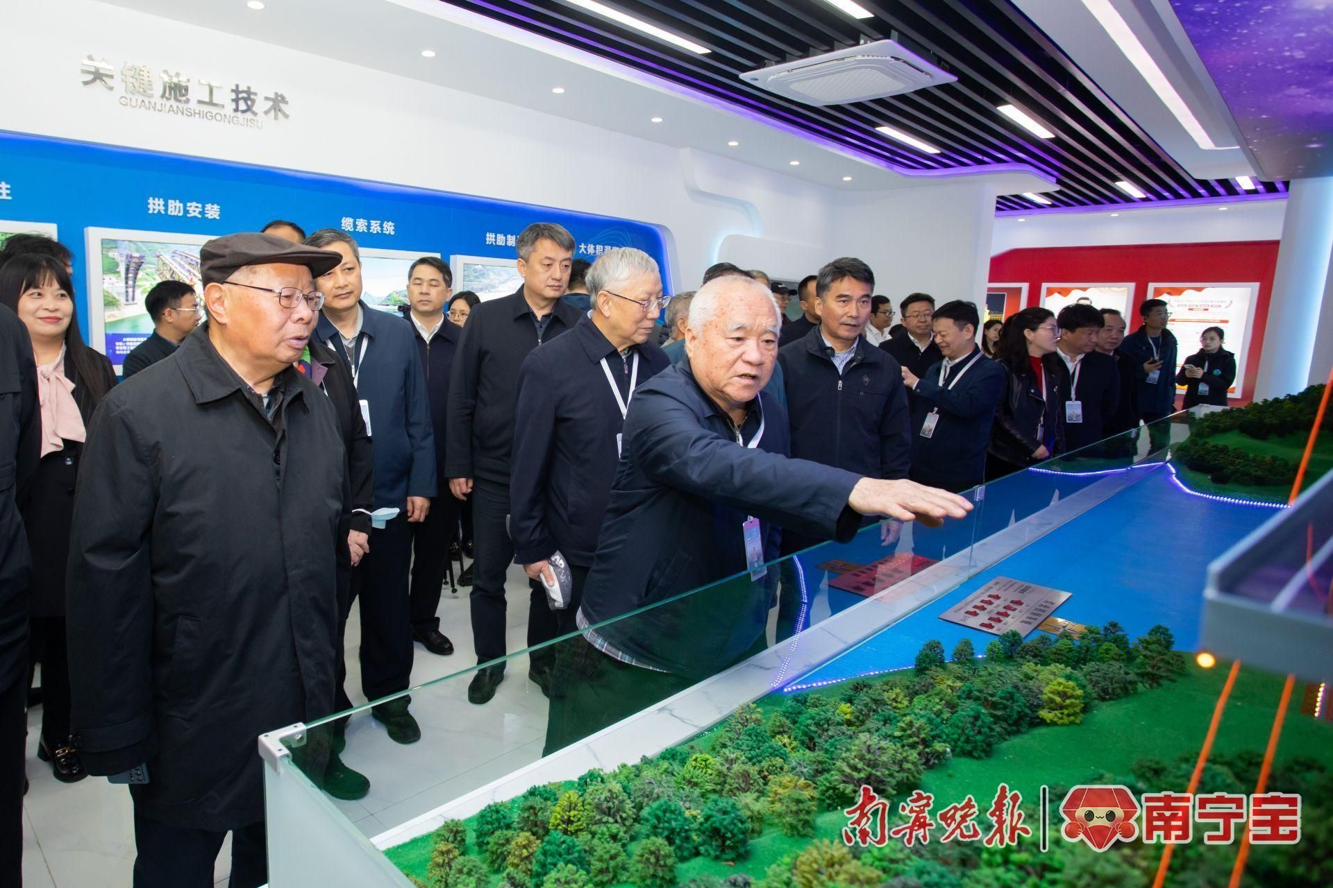 3月19日,參加大會的專家學者齊聚廣西交通投資集團南丹至天峨下老高速公路天峨龍灘特大橋建設現(xiàn)場,觀摩考察大橋建設進展情況、創(chuàng)新工藝工法、新材料運用和信息化監(jiān)測系統(tǒng)運用情況等,實地觀摩專家代表對大橋創(chuàng)新科技和建設技術(shù)給予了充分的肯定。