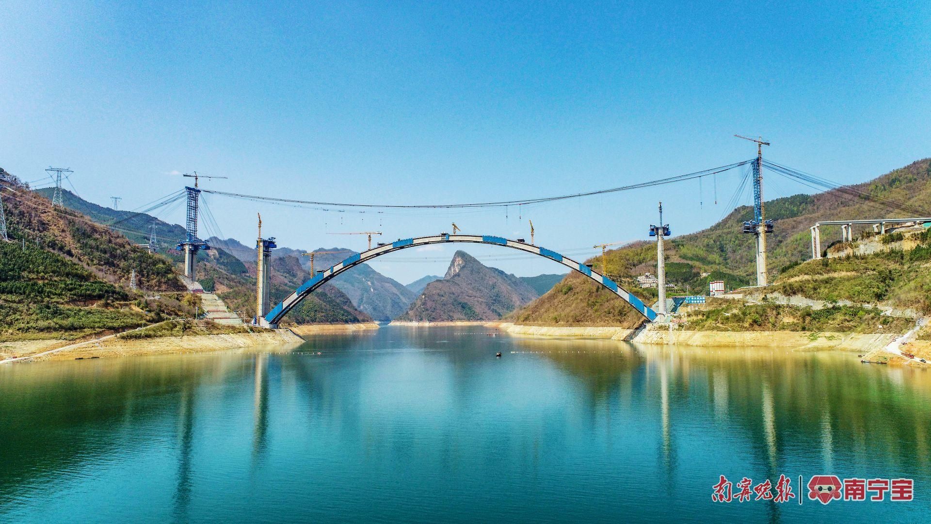 目前在建的天峨龍灘特大橋是西部陸海新通道線上南丹至天峨下老高速公路的重要控制性工程,主橋跨徑600米。