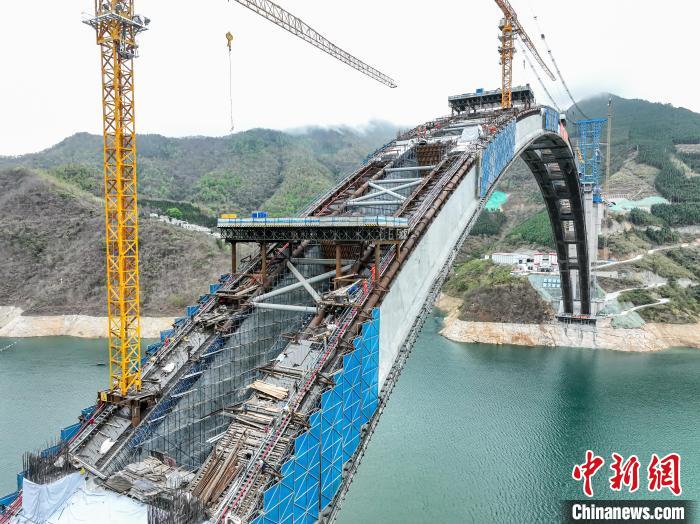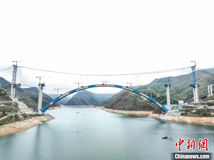 據介紹,為保證高質量完成吊裝任務,各參建單位在專家指導下,加強科技創新,研發出數字化的橋梁用纜索起重裝備、“過程最優,結果可控”的一次張拉扣索索力優化計算方法等系列裝備和施工工藝,總結出一套山區大跨度鋼管混凝土勁性骨架懸臂拼裝技術,將吊裝線型等精度控制在毫米級范圍內,有效解決大跨度拱橋拱圈線形控制難題,為大跨拱橋建造提供有力的技術支撐。