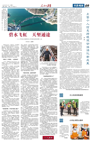 幾十年來,全世界混凝土跨徑拱橋每年跨徑增長是1.5米,把混凝土拱橋跨徑的世界紀錄提高155米,相當于干了一百年的活。