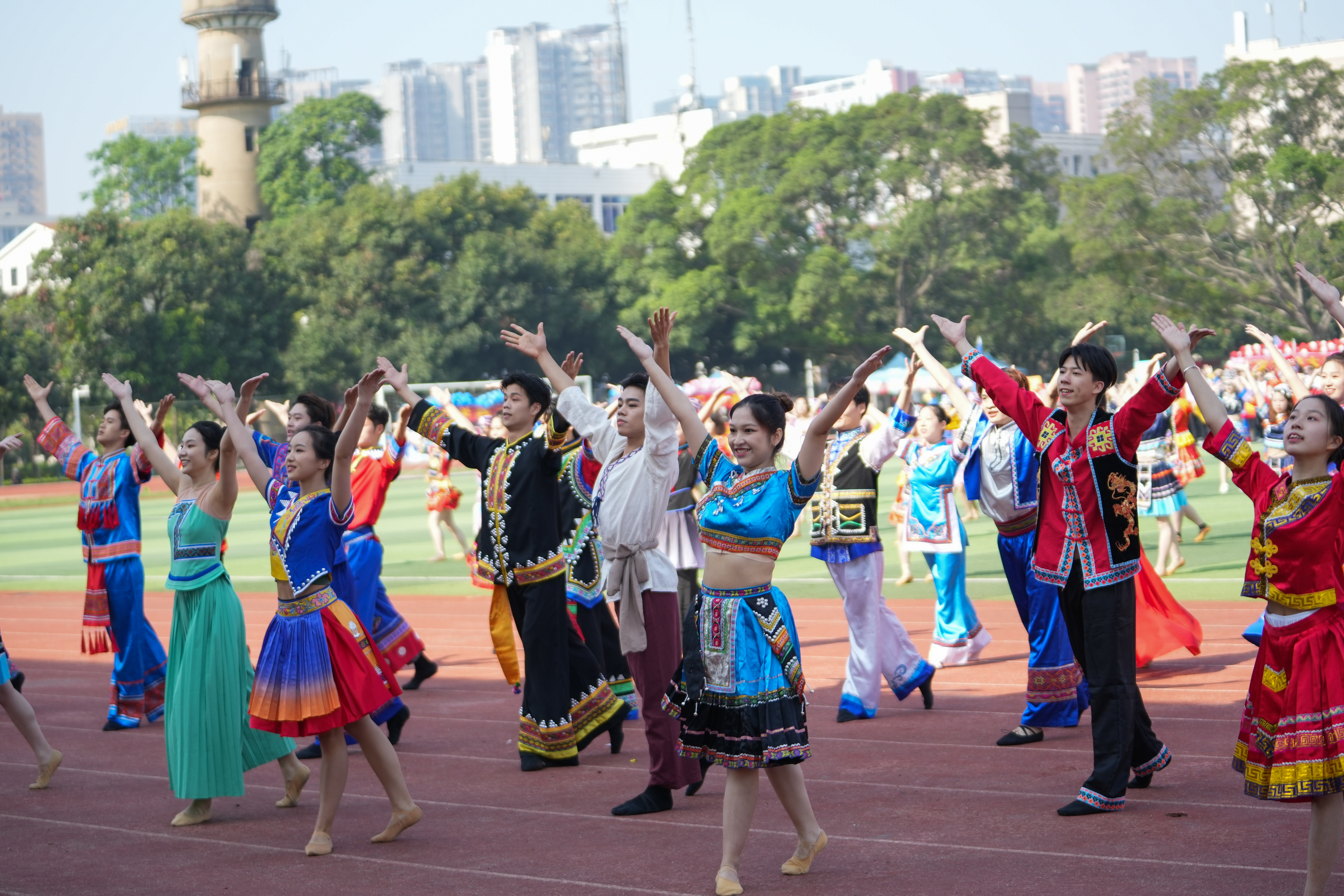 百人齊跳民族舞《幸福山歌》。學(xué)校供圖