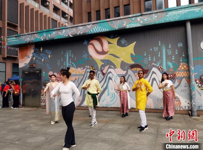 圖為留學生在學習中國傳統舞蹈?!V西大學國際學院供圖
