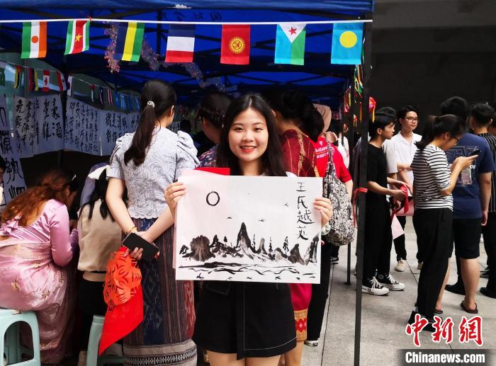 圖為留學生展示書畫作品。 廣西大學國際學院供圖