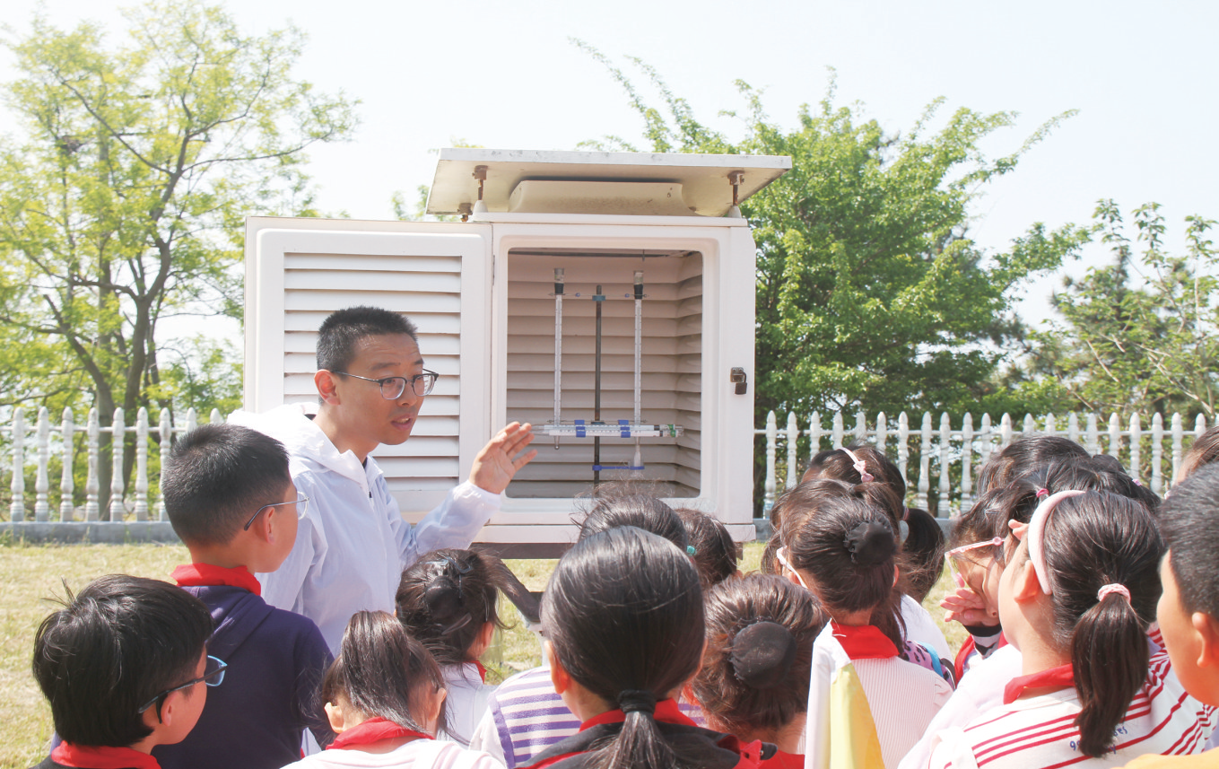 小麥島海洋站工作人員向同學(xué)們介紹海洋氣象觀測(cè)儀器設(shè)備和工作原理。
