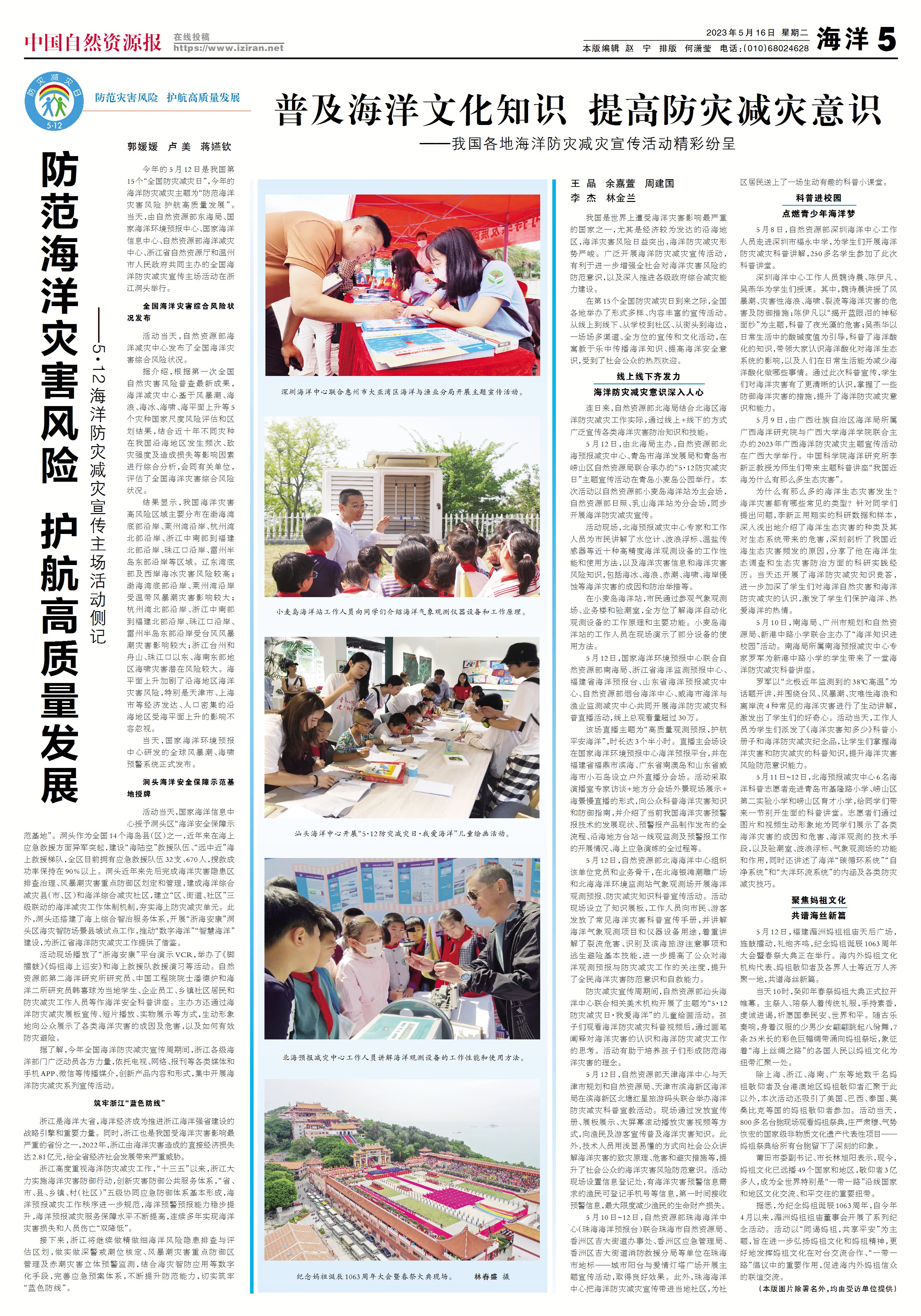 在第15個(gè)全國(guó)防災(zāi)減災(zāi)日到來(lái)之際,全國(guó)各地舉辦了形式多樣、內(nèi)容豐富的宣傳活動(dòng)。從線上到線下、從學(xué)校到社區(qū)、從街頭到海邊,一場(chǎng)場(chǎng)多渠道、全方位的宣傳和文化活動(dòng),在寓教于樂中傳播海洋知識(shí)、提高海洋安全意識(shí),受到了社會(huì)公眾的熱烈歡迎。