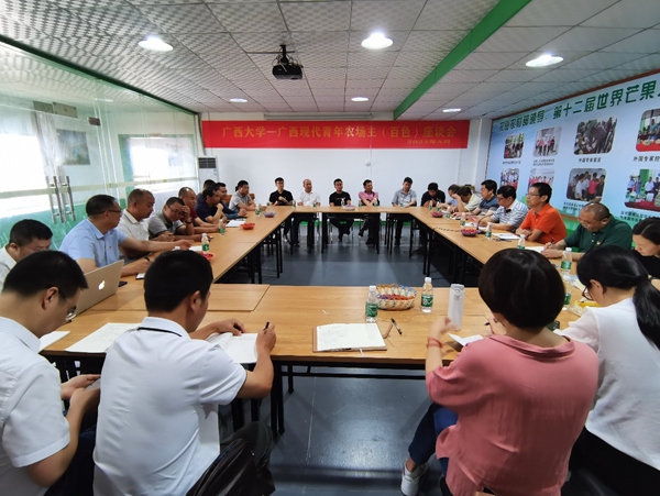 5月20日,廣西大學農(nóng)牧產(chǎn)業(yè)發(fā)展研究院、農(nóng)學院的領導專家一行19人到百色市田東縣走訪廣西現(xiàn)代青年農(nóng)場主,并開展座談會,田東縣、隆林各族自治縣等地的12名廣西現(xiàn)代青年農(nóng)場主學員參加了座談會。座談會設在第六期學員黃開祿所在的百香寶專業(yè)合作社聯(lián)合社會議室。會上,學員和老師們針對產(chǎn)業(yè)發(fā)展存在的問題展開了充分討論。廣西大學的專家分別從各個角度對問題逐個分析,并提出解決思路。