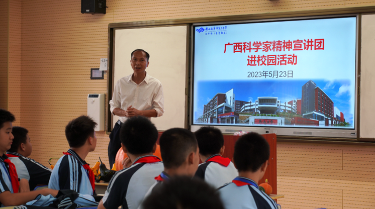 5月23日,廣西大學農學院研究生導師、廣西首屆科學家精神宣講團成員唐小付走進南寧市第三中學青秀校區,開展廣西科學家精神宣講團進校園活動。70多斤重的巨型南瓜,“燈籠”“章魚”“飛碟”狀的觀賞南瓜,形似絲瓜的長條南瓜……形狀各異的南瓜從田間地頭“走”到了中學課堂的講桌上,給學生們帶來了一場別開生面的農業科普。