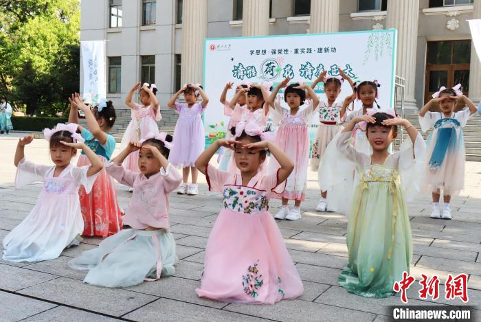 圖為幼兒園小朋友在參加荷花節活動表演。 劉美蕓 攝