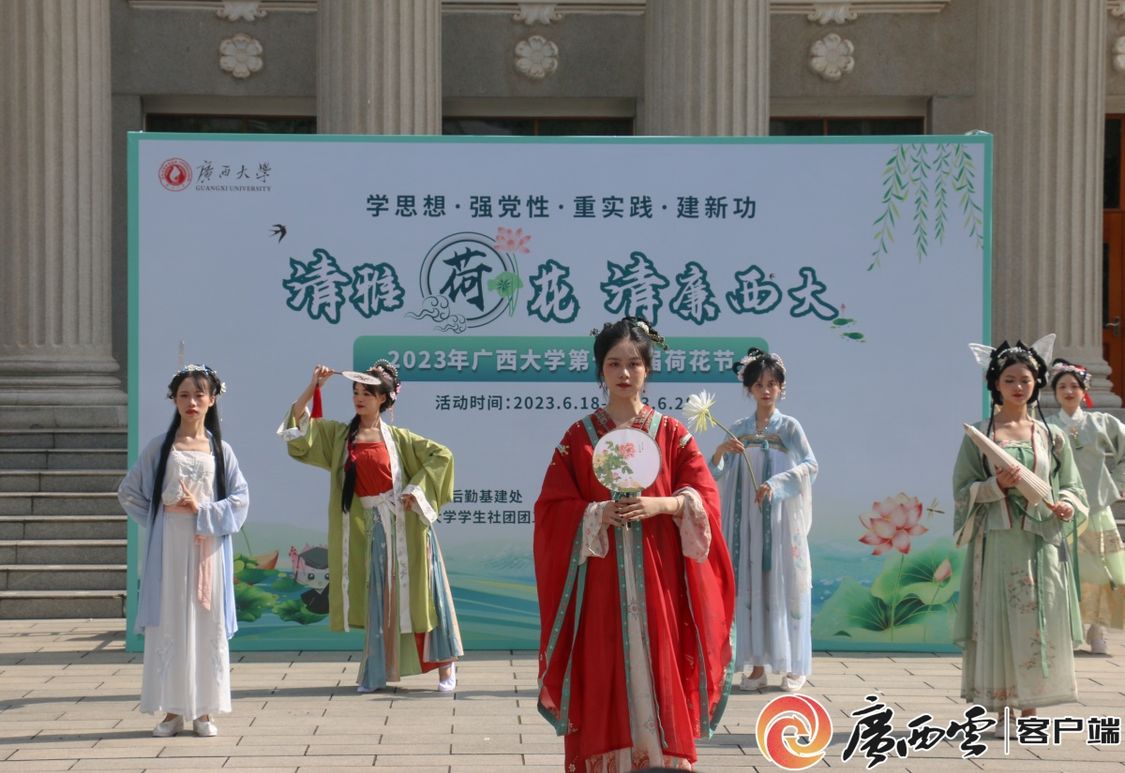 開幕式上,學生代表向全校同學發出了清廉倡議書,倡導西大學子建設美麗校園,弘揚奮發進取之氣,培養廉潔誠信之意識。參加活動的師生代表在“以清為美,以廉為榮”主題橫幅上簽名,表達西大師生弘揚敬廉崇潔優良傳統、增強廉潔自律意識、培養學術自律精神、建設清廉西大的決心。開幕式現場還開展了“清廉西大”建設成果展、“廣西大學清廉公約”宣傳、荷花主題攝影作品展,以及“清廉”主題詩歌對頌、書法及國畫荷花繪制、荷花主題漢服體驗等系列活動。本屆荷花節,還將圍繞“清雅荷花清廉西大”主題舉辦荷花攝影比賽、荷花繪畫比賽、荷花手工藝品制作等,在全校師生中營造賞荷、愛荷、尚廉、清廉的濃厚氛圍。