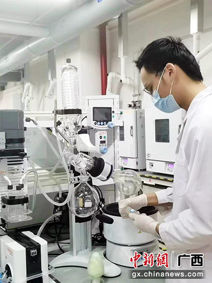 “只爭朝‘稀’”項目團隊負責人甘鈞元進行稀土氧化鈧提純實驗。黃方迪 攝