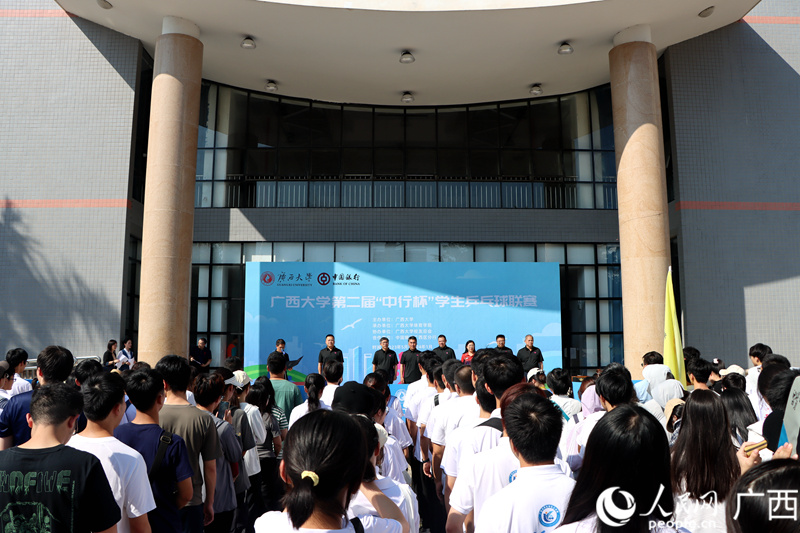人民網(wǎng)南寧10月18日電 10月17日下午,廣西大學在東校園體育館前舉行第二屆“中行杯”學生乒乓球聯(lián)賽開幕式。