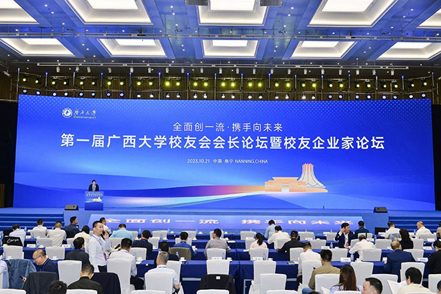 10月21日,由廣西大學主辦的第一屆廣西大學校友會會長論壇暨校友企業家論壇在南寧國際會展中心舉行,300多名校友會會長、秘書長及企業家校友現場進行了深入的互動交流,大家暢所欲言,共敘師生恩情,共謀未來發展。論壇以“全面創一流,攜手向未來”為主題,共同暢談校友組織和校友企業發展建設重點,服務國家和自治區經濟社會發展,展示廣西大學校友的精神風貌和社會擔當。