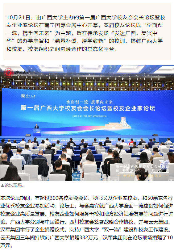 上一條:第一屆廣西大學校友會會長論壇暨校友企業家論壇舉行