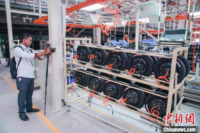 圖為中國—東盟新能源電動車基地。該基地累計引進中國國內知名整車企業以及配套企業100余家,2022年出口貿易額達870余萬美元,全產業鏈總產值超過210億元人民幣。 陳冠言 攝(資料圖)