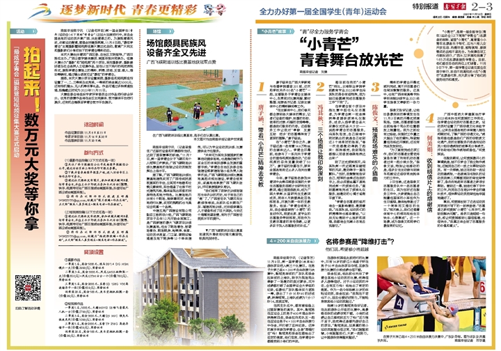 “小青芒”,是第一屆全國學生(青年)運動會(以下簡稱“學青會”)志愿者的昵稱,諧音“小青忙”,寓意著小小青年志愿者樂于幫忙,這與八桂兒女開放包容、熱情好客、能幫就幫、敢做善成的品格不謀而合。為保障各項工作順利進行,廣西從32所高校招募了1.65萬名志愿者服務學青會。目前,他們都在各自的崗位上忙碌著。11月9日下午,第一屆學青會記者見面會在南寧舉行,來自不同高校的4名“小青芒”志愿者代表,向大家分享了他們的服務經歷和感受。
