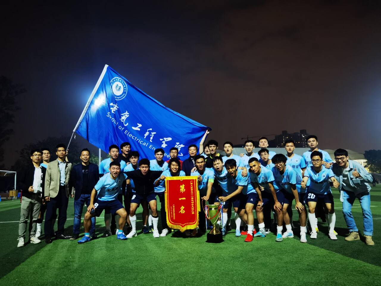 廣西大學電氣工程學院的足球隊員團結奮斗。廣西大學電氣工程學院供圖