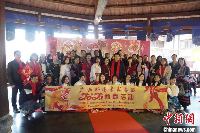 廣西外國專家喜迎2024新春活動20日在廣西南寧舉行。來自加拿大、英國、意大利、馬來西亞、越南、泰國等17個國家40余名在桂工作外國專家齊聚一堂,“組團”體驗中國年文化。