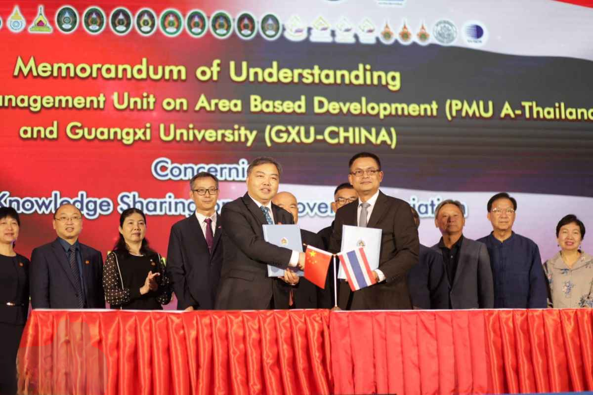 1月17日至18日,應(yīng)泰國(guó)區(qū)域發(fā)展項(xiàng)目管理小組的邀請(qǐng),廣西大學(xué)副校長(zhǎng)肖建莊一行參加在泰國(guó)加拉信大學(xué)舉辦的泰國(guó)區(qū)域發(fā)展項(xiàng)目管理小組與中國(guó)廣西大學(xué)減貧治理合作與知識(shí)共享簽約儀式,中泰兩國(guó)學(xué)者、專家將進(jìn)一步加深在與貧困問(wèn)題有關(guān)的知識(shí)體系、創(chuàng)新和適用技術(shù)清單、減貧成果價(jià)值鏈和流程等方面的合作。