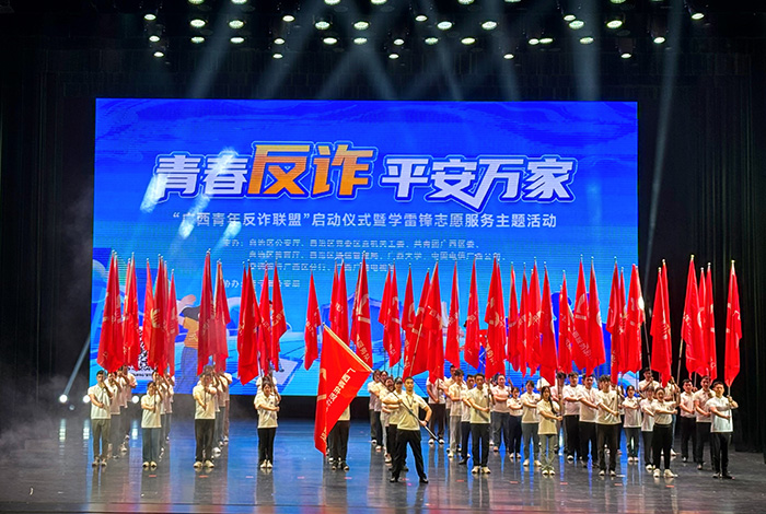3月24日,“廣西青年反詐聯盟”啟動儀式暨學雷鋒志愿服務主題活動在廣西壯族自治區南寧市舉行。本次活動旨在引導廣西青年在平安廣西、法治廣西建設中發揮生力軍和突擊隊作用,推動構建廣西“青年民警+團干部+青年志愿者”的反詐宣傳新格局,在奮力譜寫中國式現代化廣西篇章的生動實踐中貢獻青春力量。