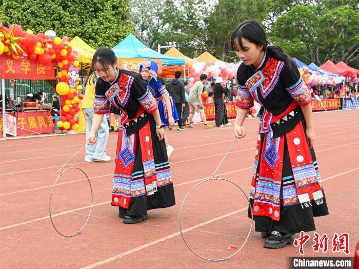 圖為大學生在體驗滾鐵環項目。共青團廣西大學委員會供圖