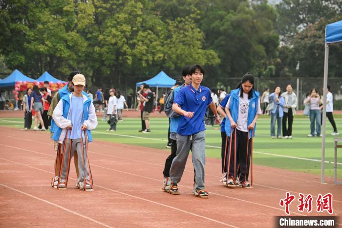 圖為大學生在體驗板鞋競速項目。共青團廣西大學委員會供圖