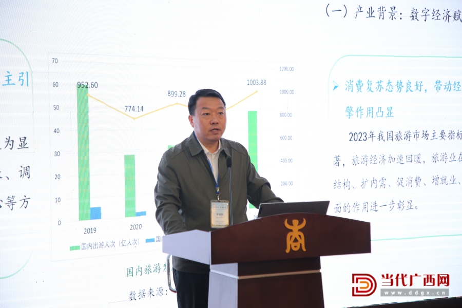 廣西旅游發(fā)展集團(tuán)有限公司黨委副書記陶社平作主旨發(fā)言。記者 盧松見 攝