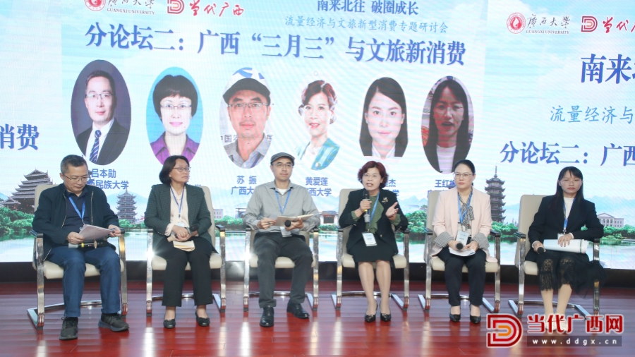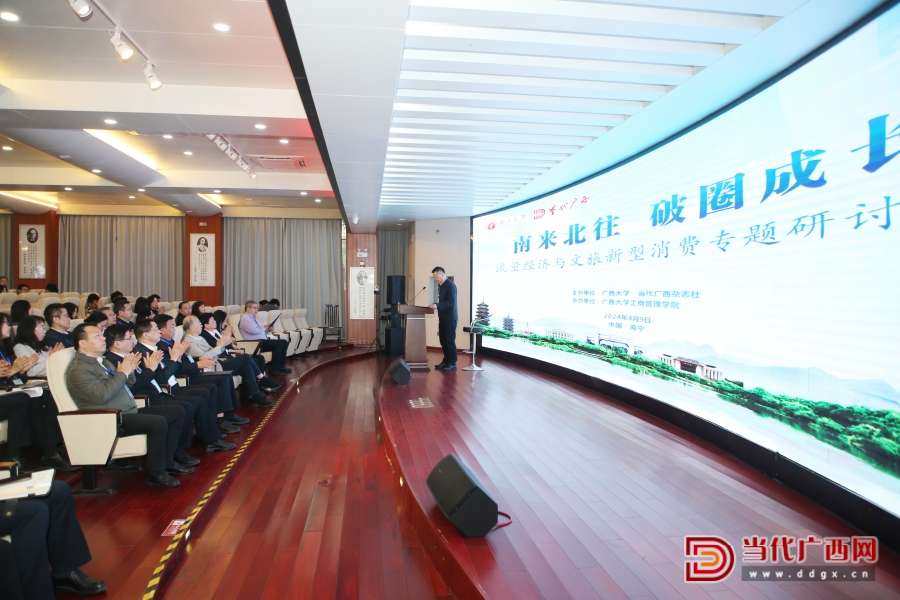 4月9日,由廣西大學(xué)、當(dāng)代廣西雜志社主辦,廣西大學(xué)工商管理學(xué)院承辦的“南來北往 破圈成長(zhǎng)——流量經(jīng)濟(jì)與文旅新型消費(fèi)專題研討會(huì)”在廣西大學(xué)舉行。來自自治區(qū)有關(guān)部門及區(qū)內(nèi)外十多所高校的負(fù)責(zé)人、專家學(xué)者近100人參加會(huì)議。