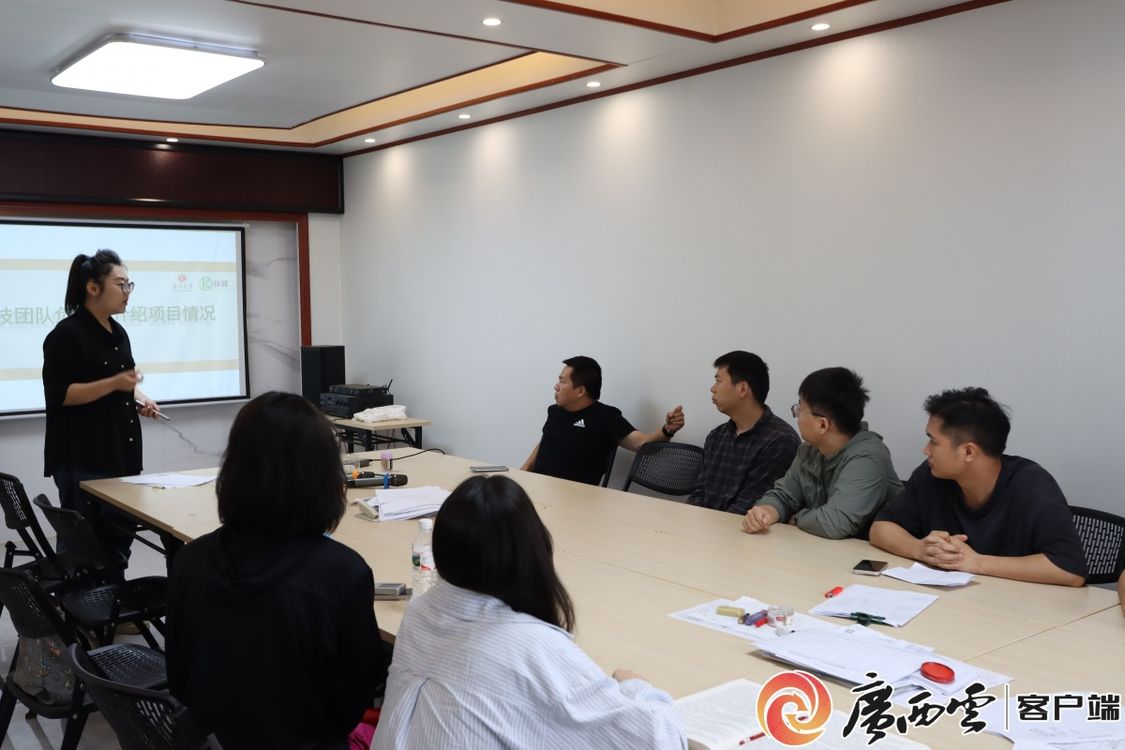 團(tuán)隊負(fù)責(zé)人向企業(yè)介紹甘蔗脫毒苗具體情況。通訊員 黃皓陽 攝