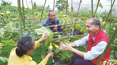 唐小付給蓮花村村民傳授南瓜護理技術。