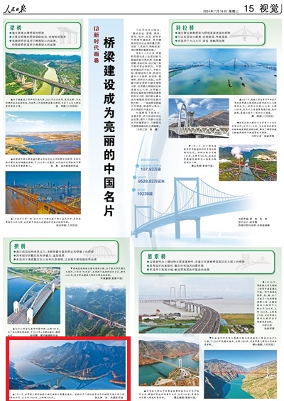 7月16日,《人民日報》第15版“新時代畫卷”欄目刊發《橋梁建設成為亮麗的中國名片》,其中圖片報道了世界最大跨徑拱橋天峨龍灘特大橋的事。涉及廣西的內容,摘錄如下: