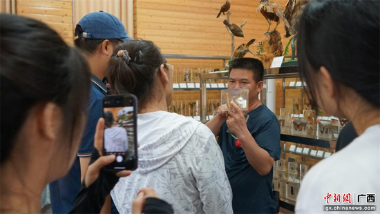 大明山工作人員給實踐團師生展示植物標本。蒙玥盈 攝