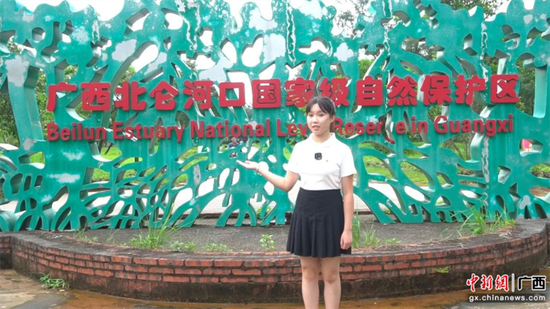 實踐團成員在廣西北侖河口國家級自然保護區(qū)錄制國家安全主題團課。