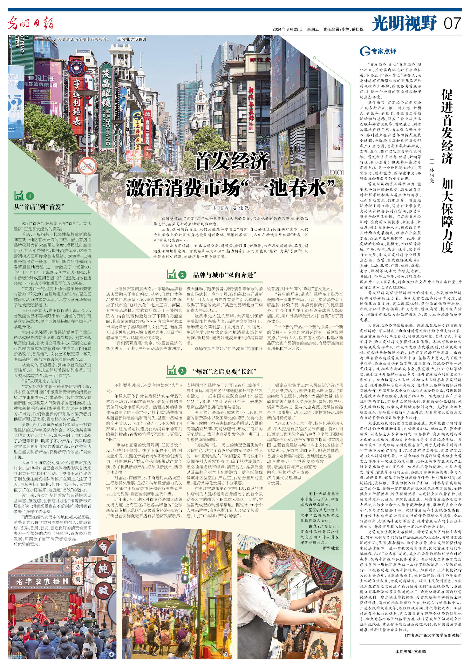首發經濟是促進經濟增長的新形式,也是推動經濟結構調整的新生力量。要加大首發經濟的保障力度,通過強化政策支持、建立激勵機制、提供法治保障等措施,積極開拓消費新領域,擴大內需、增強消費,提升經濟活力,增強創新驅動力和品牌吸附力,助力社會經濟高質量發展。