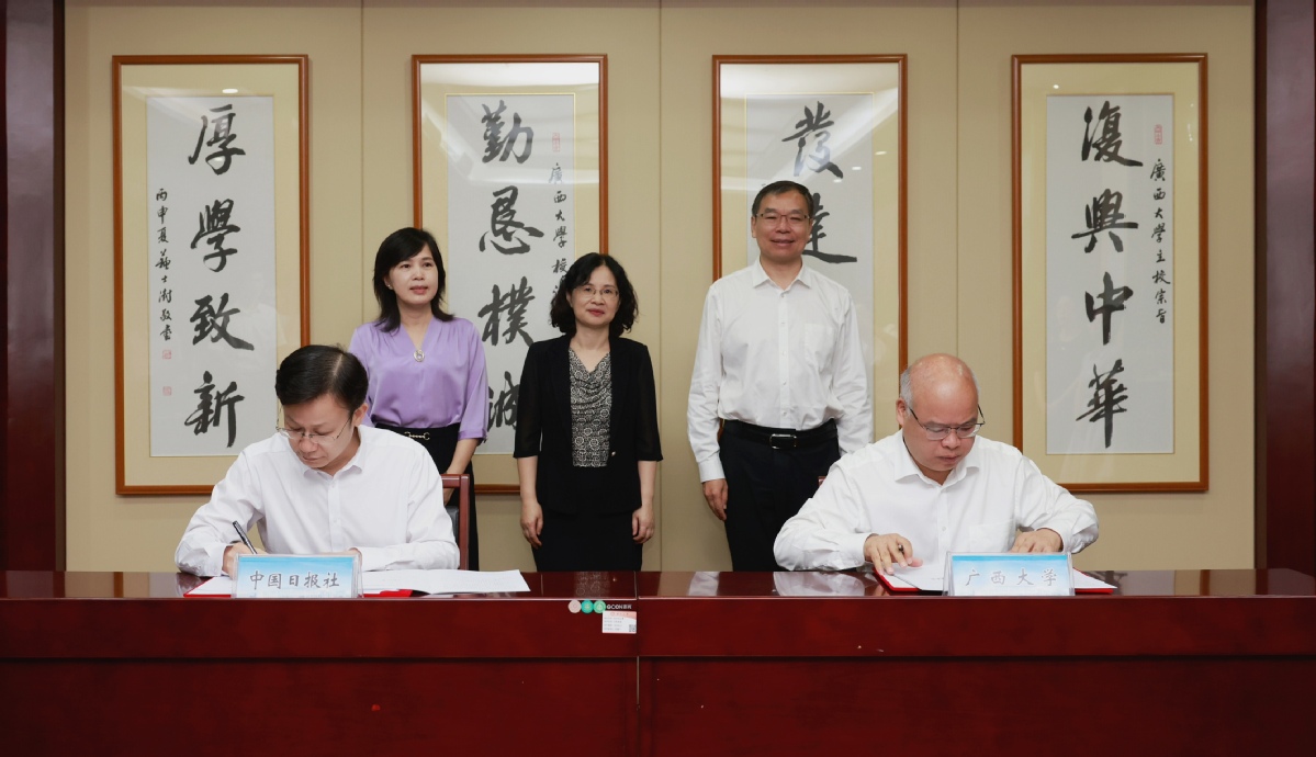 9月5日上午,中國日報社和廣西大學在南寧市簽署戰略合作框架協議。雙方將在國際傳播、人才培養、課題研究、教育培訓、決策咨詢等方面加強合作。