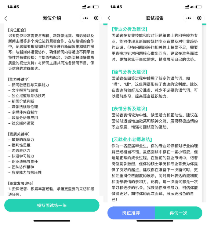 對于AI模擬面試的未來發展,師生們也提出了期望。廣西大學文學院的晏同學希望,AI面試能針對無領導小組討論、結構化面試等復雜形式進行訓練,幫助學生應對多樣化面試場景。王老師建議,AI面試功能應繼續拓展,實現從求職到入職“一條龍”服務。